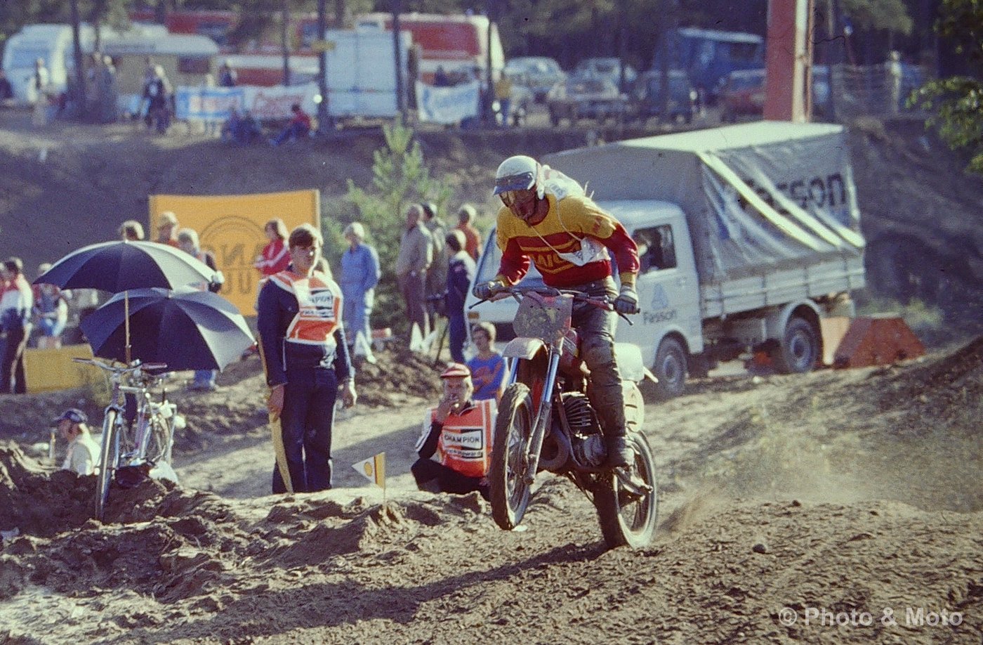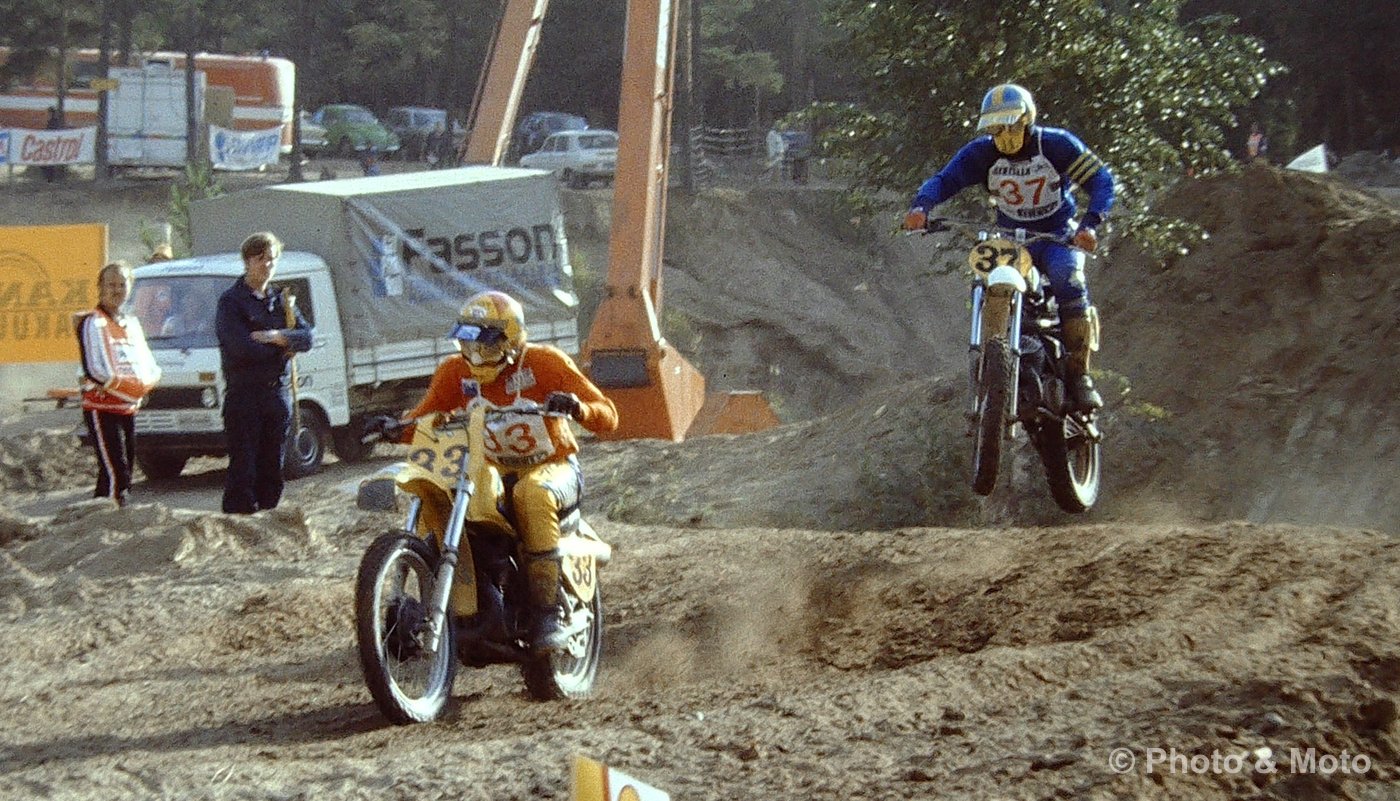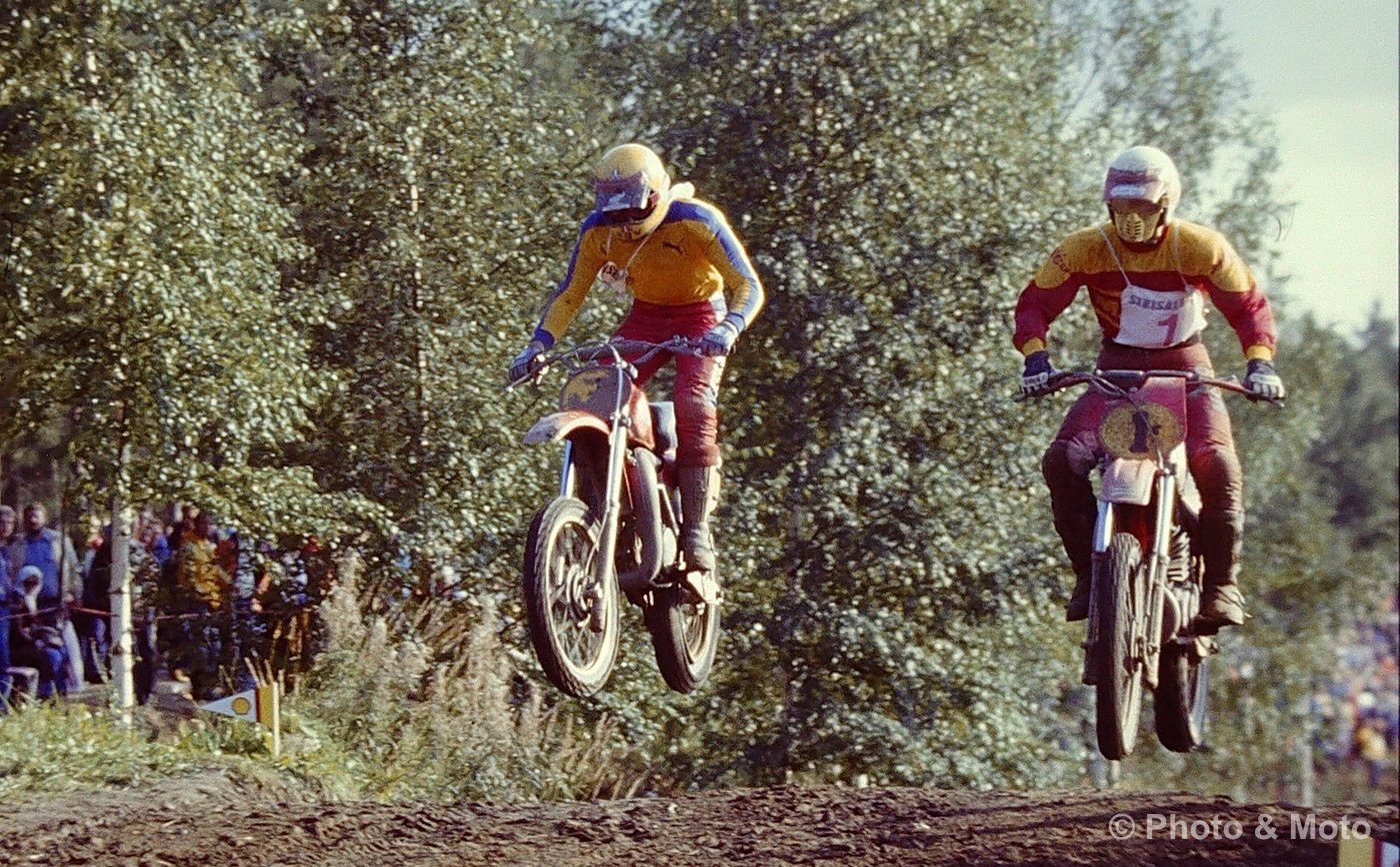 R. De Coster, H.Everts ja A. Malherbe. Motocross Des Nations 500 Ruskeasanta 1979