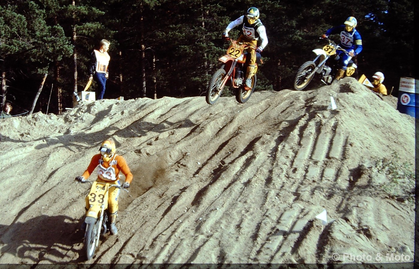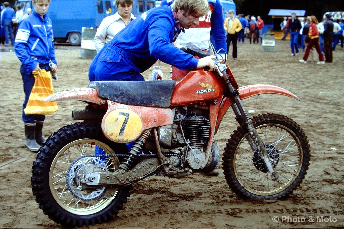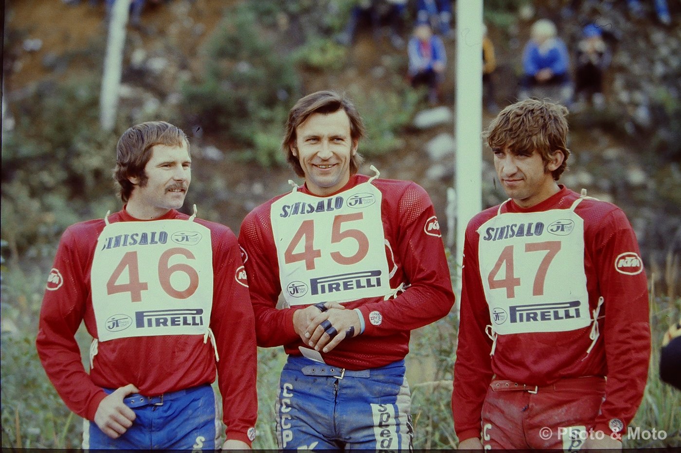 R. De Coster, H.Everts ja A. Malherbe. Motocross Des Nations 500 Ruskeasanta 1979
